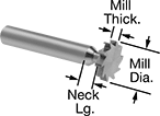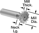 | Dia. | Thick. | Shank Dia. | Dia. | Lg. | Overall Lg. | For Woodruff ANSI Key No. | For Use On | Each | |