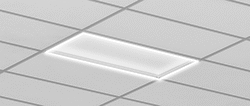 Style C lights produce light from channels along the edge of a ceiling tile for a modern look. They direct some light upward, which reflects off of the ceiling tile to reduce glare and eye strain. They’re most effective when used with a white ceiling. To install, snap the light together to form a frame. The frame rests inside the grid, so you can reinstall the original ceiling tile inside it for a finished look.
