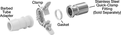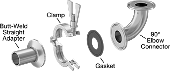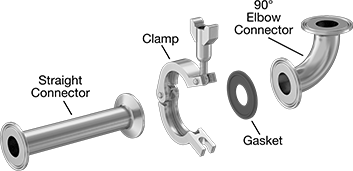 Note: To complete a connection, you’ll need two quick-clamp fittings, a clamp, and a gasket (all sold separately).