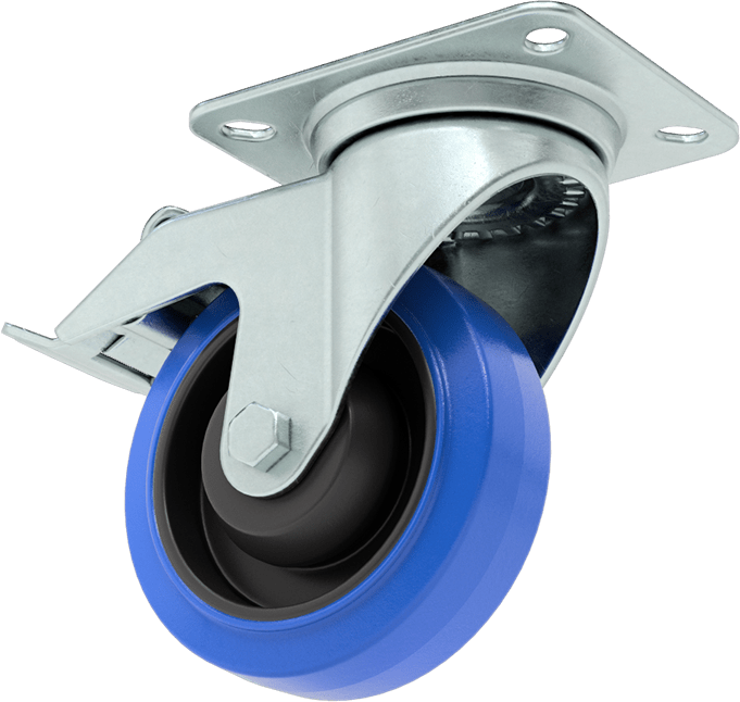 Blue Rubber Wheel, Swivel with Brake, 4" Diameter Wheel