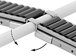 Adjustable-angle brackets change the angle between two connected conveyor rail sections up to 45°. You’ll need a recessed-stop conveyor rail bracket (sold separately) to keep items from falling off the end.