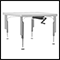 Adjustable-height legs include a single rail leg that telescopes into a quad rail. Adjust the height, then turn the handle to hold the leg in place. Often used to raise and lower workstations and conveyors.