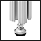 Leveling mounting feet swivel to compensate for uneven floors. To install, tap the hole in the end of the rail and screw in the stem.