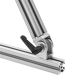 Pivots provide smooth motion at the junction between two T-slotted rails.