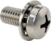 These corrosion-resistant screws have a washer with sharp internal teeth to keep screws in place during vibration. Unlike external-tooth lock washers, their smooth outside edge provides a finished look and won’t snag on surrounding objects. Also known as Sems screws, the washer rotates freely but is permanently attached. These screws have a moderate height and width profile, offering a middle ground between narrower button heads and wider truss heads. The Phillips drive easily aligns with drivers and withstands more torque than slotted drives, but drivers slip when you apply too much force.