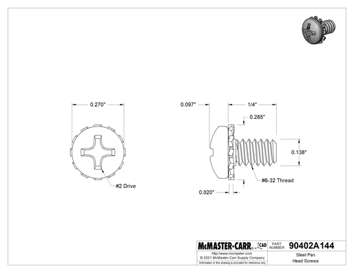 Screw Size Decimal Equivalent | 0.138" |