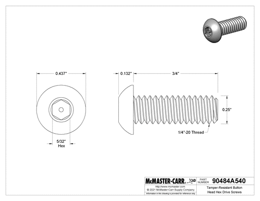 Tamper-Resistant Button Head Hex Drive Screws