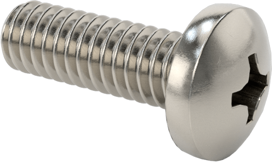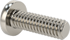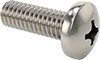 These stainless steel pan head Phillips screws won't rust or corrode when exposed to moisture and chemicals. They have a moderate height and width profile, offering a middle ground between narrower button heads and wider truss heads. The Phillips drive easily aligns with drivers and withstands more torque than slotted drives, but drivers slip when you apply too much force.