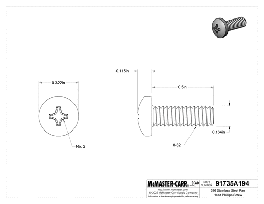 Super-Corrosion-Resistant, 8-32 Thread Size, 1/2" Long