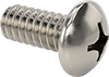 These stainless steel pan head Phillips screws won't rust or corrode when exposed to moisture and chemicals. They have a moderate height and width profile, offering a middle ground between narrower button heads and wider truss heads. The Phillips drive easily aligns with drivers and withstands more torque than slotted drives, but drivers slip when you apply too much force.