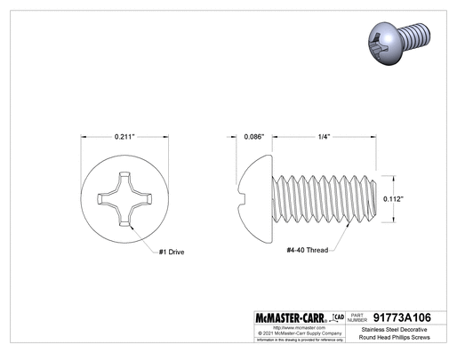 Screw Size Decimal Equivalent | 0.112" |