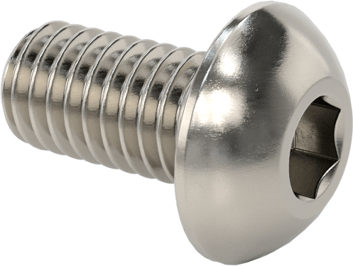 These button head screws won't corrode from moisture and chemicals, but they aren't as strong as alloy steel screws. The button head looks similar to a pan head, but it's lower and more compact, taking up less space. With six contact points, the hex drive withstands more torque than slotted and Phillips to securely grip your driver.