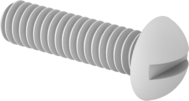 High-Temperature Chemical-Resistant PTFE—The most chemical-resistant plastic rounded head screws we offer, these stand up to the widest range of harsh acids, bases, solvents, and corrosive cleaners. They also keep their shape and strength at higher temperatures than most plastics.