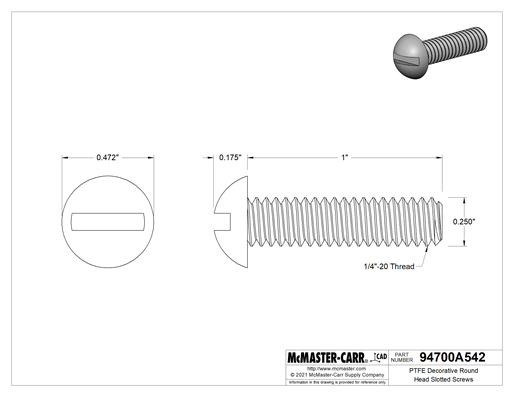 Extreme-Temperature, Chemical-Resistant, 1/4"-20 Thread, 1" Long