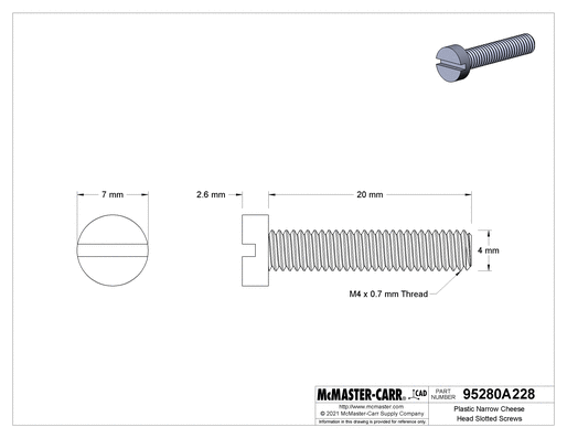 Plastic, M4 x 0.70 mm Thread, 20mm Long