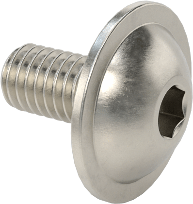 Spread out pressure over a large area without adding a washer. Up to twice the diameter of standard flanges, the flange on these screws distributes pressure over a large area, protecting thin material. Made of stainless steel, they won't rust or corrode when exposed to moisture and chemicals, but they're not as strong as alloy steel. The button head looks similar to a pan head, but it's lower and more compact, taking up less space. With six contact points, the hex drive withstands more torque than slotted and Phillips to securely grip your driver.