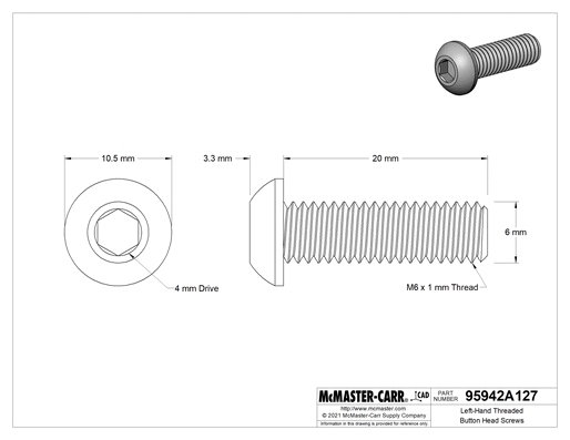 Left-Hand Threaded Button Head Screws