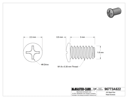 These screws are manufactured to meet Japanese Industrial Standards. Similar in appearance to Phillips, the JIS drive has a shallower opening with sharper angles and straighter internal walls. This lets them withstand more torque while preventing the driver from slipping and damaging the drive. Tighten them only with a JIS driver to avoid stripping the drive. Some JIS screws are marked with a dot near the drive for quick identification. Pan heads have a moderate height and width profile, offering a middle ground between narrower button heads and wider truss heads.