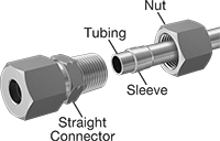A nut with two sleeves (ferrules) gives these fittings extra gripping power. The sleeves bite into tubing as you tighten the nut, creating a strong seal. Also known as instrumentation fittings, they are made to tight tolerances for use in high-precision applications. They are compatible with Swagelok®, Let-Lok, and A-Lok fittings.