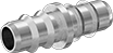 Slide the barbed end into rubber hose and secure with the appropriate clamp or crimp-on hose ferrule.