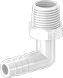 Made of acetal, these fittings won’t absorb water and lose strength, even in high-humidity environments. They have barbs that grip onto tubing.