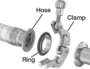 Connect to high-vacuum pumps to route exhaust fumes out of your work area. Also known as roughing hose. This hose is equipped with quick-clamp (KF) fittings; a clamp and a ring (both sold separately) are required for each fitting. Hose is flexible so you can snake it around equipment. It's reinforced with wire to prevent it from collapsing. Not for use in pressure applications.