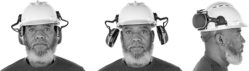 Snap these earmuffs on and off your slotted hard hat (sold separately). Pull them down over your ears to reduce noise, lift to the side for a quick conversation, or tuck them behind your head when it’s quiet.