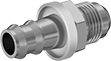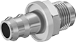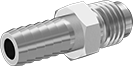 Slide the barbed end into rubber hose and secure with the appropriate clamp or crimp-on hose ferrule.