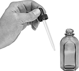 These bottles have a squeeze-bulb dropper attached to the lid.