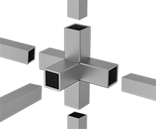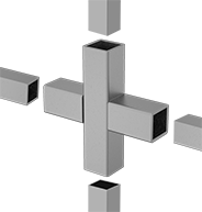 Create strong structures by welding this framing together. Add metal panels to close off openings. Slide the rail into the fitting and weld in place.