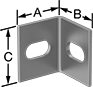 (A) | (B) | (C) | Lg. Tolerance | Thick. | Thick. Tolerance | Angle | Angle Tolerance | Corner Radius | Flatness Tolerance | Fasteners Included | Number of Slots | For Screw Size | 1-19 | 20-Up | |