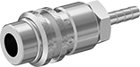 Plugs and sockets with a clamp-on/crimp-on barbed end insert into rubber hose and secure with a clamp or a crimp-on hose ferrule.