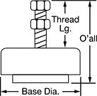 | Thread Size | Thread Lg. | Capacity per Mount, lbs. | Deflection @ Capacity | Base Dia. | Overall Ht. | Temperature Range, °F | Each | |