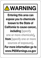Warning—Entering this Area Can Expose You to Chemicals Known to the State of California to Cause Cancer, Including ___, from ___ (English) | ||||||||