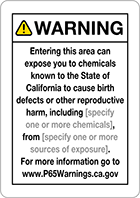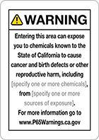 Warning—Entering this Area Can Expose You to Chemicals Known to the State of California to Cause Birth Defects or Other Reproductive Harm, Including ___, from ___ (English) | ||||||||