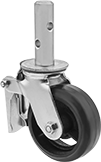 The large stem on these casters fits into scaffold frames and round tubing. All casters have a total lock that brakes the wheel and locks the swivel in one operation.