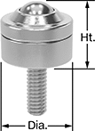 Ball Dia. | Cap., lbs. | Ht. | Dia. | Working Orientation | Thread Size | Stud Lg. | Each | ||