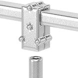 Adjustable-angle brackets change the angle between two connected conveyor rail sections up to 45°. You’ll need a recessed-stop conveyor rail bracket (sold separately) to keep items from falling off the end.