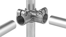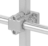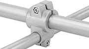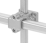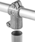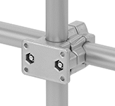 Fittings come in two pieces to clasp over rails, making assembly and disassembly quicker than our other framing. Use it to form temporary partitions, modular conveyors, and workstations. To assemble, clamp fittings onto the rail and tighten the included cap screw and nut. For permanent connections and added strength, fittings have a 5/32" hole to drill in an additional screw (not included).