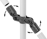 Adjustable-angle fittings can be positioned at any angle. Tighten the hex head screw to secure.