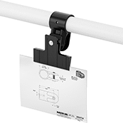 Add-on through-hole fittings have a hinge, so you can fit them onto existing rails without disassembling. A quick-release lever makes removal easy.