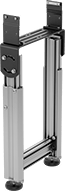 Add brackets to mount these conveyors on a work surface or use two stands for freestanding use. Stands mount to conveyors with the included fasteners and have leveling feet to compensate for uneven floors. They adjust to match the height of existing conveyors or stations.