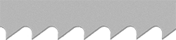 Teeth are set from side to side in a wavy pattern for cutting metal sheets and thin-walled pipe. These bimetal blades have a carbon steel body with high-speed steel teeth that last up to four times longer than carbon steel teeth. They're flexible for making straight and curved cuts. Cut them to length and use a band saw welder to join the ends. Tooth size and number per inch are constant throughout the blade. Choose blades with more teeth per inch for a smooth finish; choose blades with fewer teeth per inch for fast, rough cutting.
