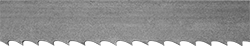 These bimetal blades have a carbon steel body with high-speed steel teeth that last up to four times longer than carbon steel teeth. They're flexible for making straight and curved cuts. Cut them to length and use a band saw welder to join the ends. Tooth size and number per inch are constant throughout the blade. Choose blades with more teeth per inch for a smooth finish; choose blades with fewer teeth per inch for fast, rough cutting.