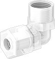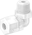 Lighter in weight than their metal counterparts, these compression fittings are polypropylene. They have excellent impact and abrasion resistance. Fittings include a nut with a built-in sleeve (ferrule), so there’s no need to remove the nut for assembly. The sleeve compresses the tubing as you tighten the nut, creating a strong seal. Fittings are also known as flareless fittings.