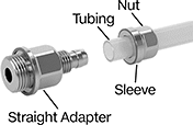 A sleeve (ferrule) compresses the tubing as you tighten the nut, creating a strong seal. The nut and sleeve are included. Fittings are also known as flareless fittings. Fittings that include a gripper sleeve on the tubing create an even tighter seal.