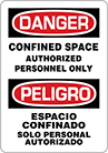 Danger—Confined Space Authorized Personnel Only/Peligro—Espacio Confinado Solo Personal Autorizado | |||||||||