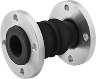 These expansion joints have a double-bulb design for extra movement and vibration absorption. The flanged ends rotate for easy bolt hole alignment during installation. They mate with a same-size flat-surface Class 150 flange without the need for a gasket. Joints have a flexible body that is reinforced with nylon for added strength.
