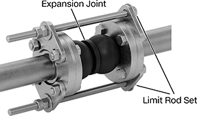 Attach limit rod sets (sold separately) to the flanges to prevent overextension where anchoring is insufficient. To accommodate the thickness of the limit rod mounting plate, use bolts that are 7/8" longer than the bolts connecting the expansion joint to the pipe flange. Each set of limit rods requires eight bolts (not included).