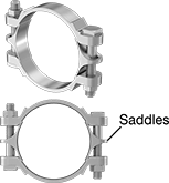 Double Bolt with Saddles—Same as the double-bolt clamps, except these have two saddles to maintain even pressure around large-diameter hose.